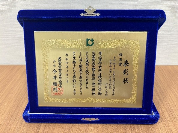 安全衛生表彰の「工事現場部門」で表彰されました。今後も労働災害・第三者災害・