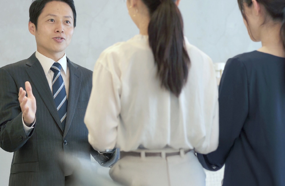 当社では3か月の集合研修が終了後、「実務研修」として各部署へ仮配属され、一人ひとり目標を定め、目標に向かって各部署にいる年齢の近い先輩社員が会社のことや実務のこと、教育チームとの面談などでしっかりとサポートしてくれます。